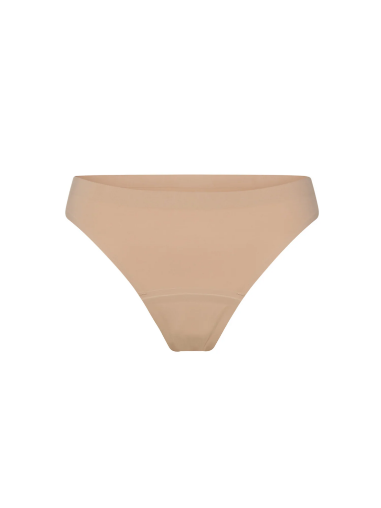 De Seamfree Hi-Leg Cheeky van Modibodi zit best comfortabel en het design is mooi subtiel, maar voor welgeteld €40+ had ik er toch iets meer van verwacht. De kleur ‘Cashew’ oogt wat flets en de slip biedt matige absorptie — prima voor normale dagen, maar niet genoeg voor zware flow. Ook verschuift hij een beetje bij veel bewegen, wat niet echt vertrouwen geeft.